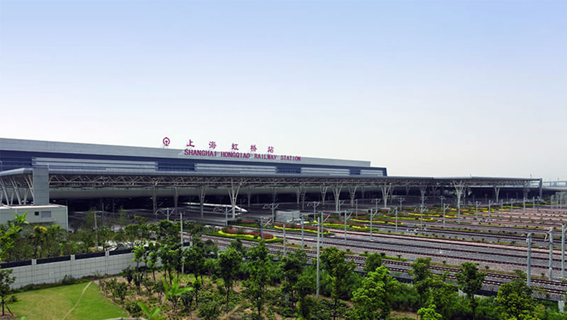 上海虹橋交通樞紐位于上海市偏西部,隨著2010年7月1日滬寧高鐵的通車,上海虹橋站部分啟用。此前的2010年3月,與虹橋站并排的虹橋機場2號航站樓怡開始使用,地鐵2號線西延段同期投入使用,2010年10月地鐵10號線也開始投入使用。作為京滬高鐵的終點,上海虹橋站將集高速鐵路、城際鐵路、市域鐵路、航空、城市軌道交通和公交等多種交通方式,成為未來上海最大的綜合交通樞紐。虹橋交通樞紐西貨運區外墻采用