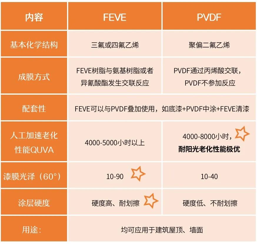 FEVE是聚氟烯烴-烷基乙烯基醚共聚或者氟烯烴-烷基乙烯基酯共聚樹脂的英文縮寫,該樹脂制成的涂料具有高光澤、高透明度的特點,兼具優(yōu)秀的耐候性可在常溫下交聯(lián)固化,也可以適應高溫固化。