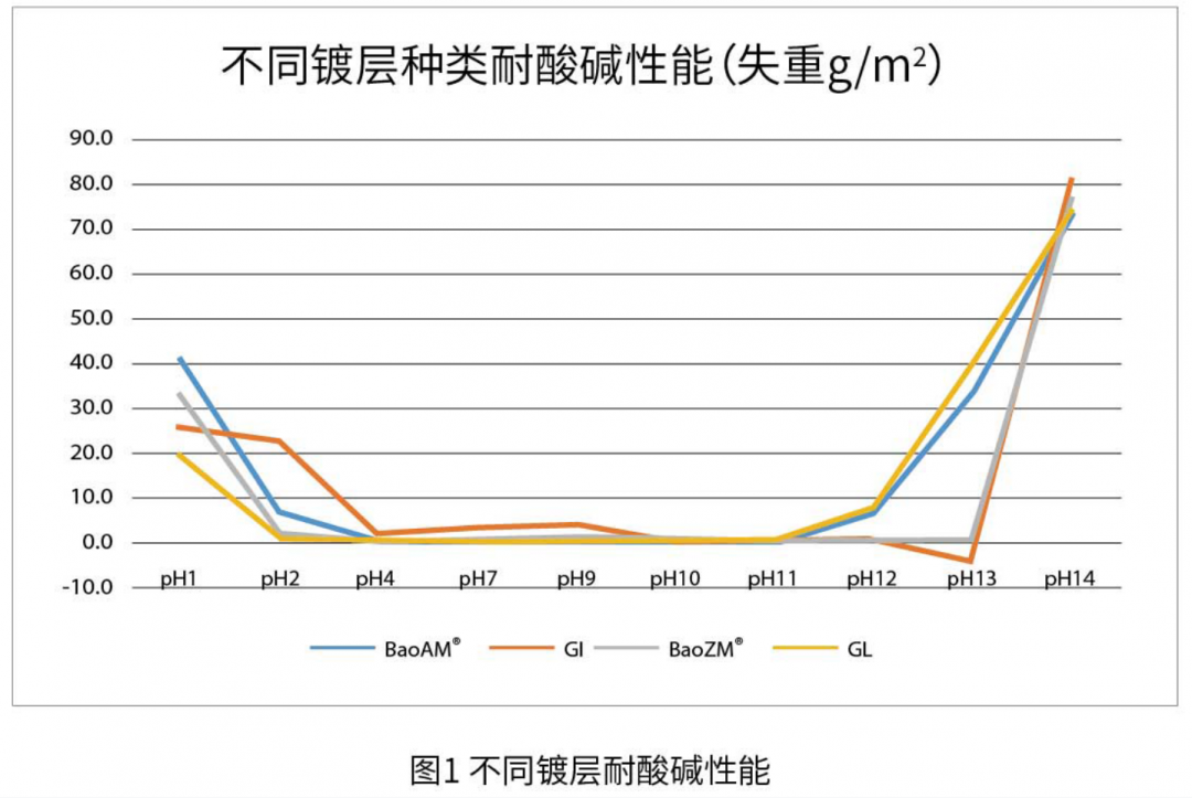 在耐堿性方面,熱鍍鋅和BaoZM®表現(xiàn)優(yōu)秀(圖1)。