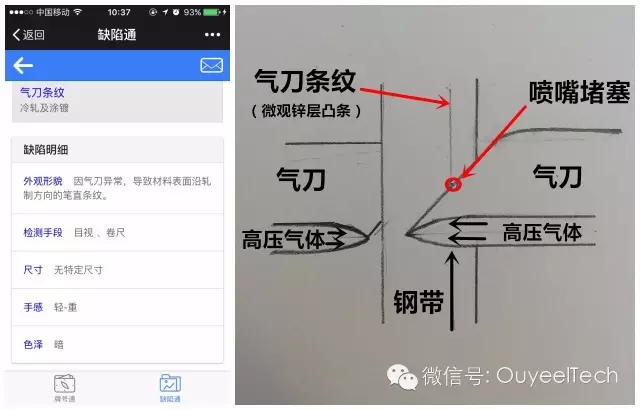 刷墻時(shí)滾筒不平整會(huì)出現(xiàn)粉刷條紋,熱鍍工藝中沒(méi)有固體的刮刀,而是使用氣刀中噴出的高壓氣體抹平鋅層。氣刀堵塞,壓力不均就會(huì)出現(xiàn)氣刀條紋。