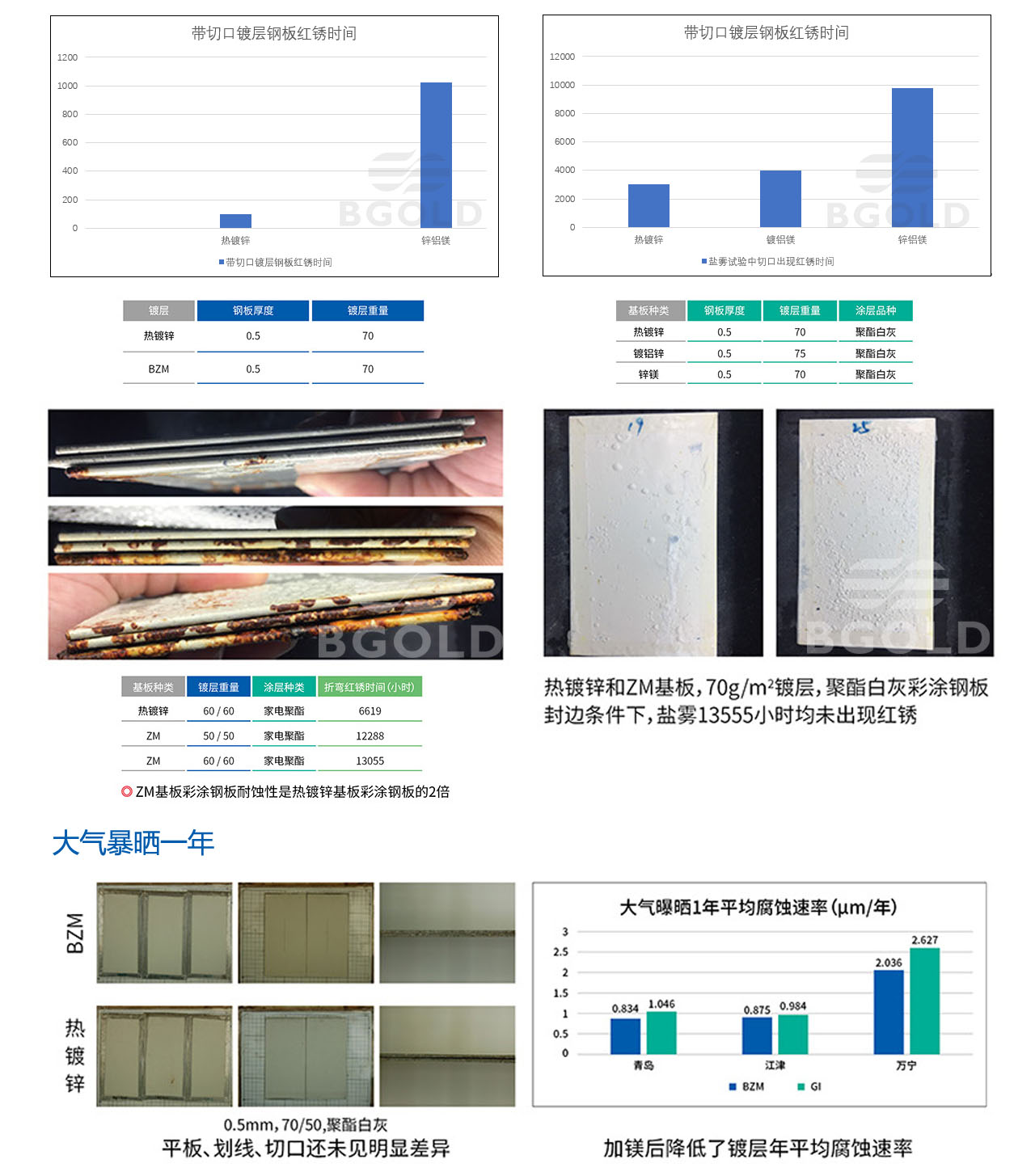 產(chǎn)品特點(diǎn)(耐蝕性:切口和折彎后耐蝕性是熱鍍基板彩涂2~3倍)